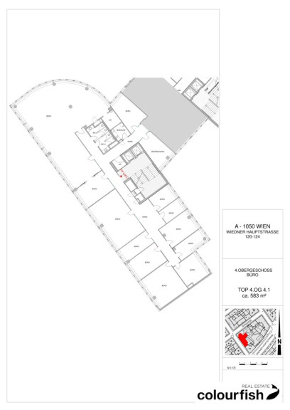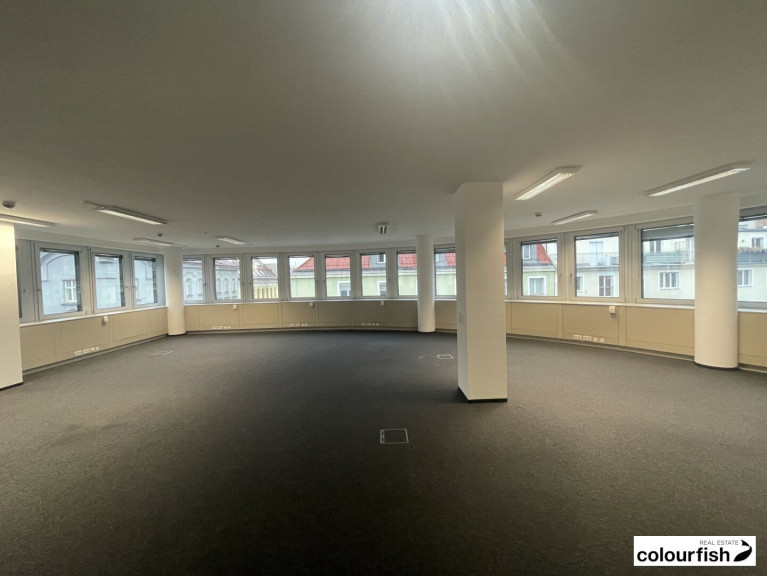 Im modernen Bürokomplex OC5 direkt an der Wiedner Hauptstraße kommt diese attraktive Bürofläche im 4. Obergeschoß zur Vermietung. Die Fläche ist äußerst hell und freundlich, die Fenster sind mit Jalousien ausgestattet. Der aktuelle Grundriss gliedert sich in einen sehr großzügig gestalteteten offenen Bereich, sowie Einzel- und Gruppenbüros. Eine Adaptierung des Grundrisses an mietersezifische Anforderzungen ist grundsätzlich möglich. Die Büroräume werden über Fancoils beheizt und gekühlt, die Verkabelung erfolgt über Bodendosen bzw. Fensterbankkabelkanäle. Aktuell ist neben den getrennten Sanitäreinheiten auch eine Teeküche eingebaut.
