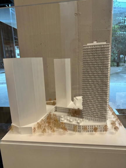 In dem Wohnturm befindet sich ein Outdoor-Pool mit Liegemöglichkeiten zum entspannen, ein Sonnendeck, Kinderwagen- und Fahradräume, Laufstrecke im Dritten Obergeschoss, Paketboxanlage, multifunktionale Gemeinschaftsräume, Indoor- und Outdoor-Kinderspielplätze, Fitnessräume, Spa und Saunabereich, Waschküche, Foyer mit Concierge-Service / Rezeption beim Eingang, attraktive Außenanlagen mit parkähnlichen Freiflächen, Gastronomie, Shops und Lebensmittelhandel.