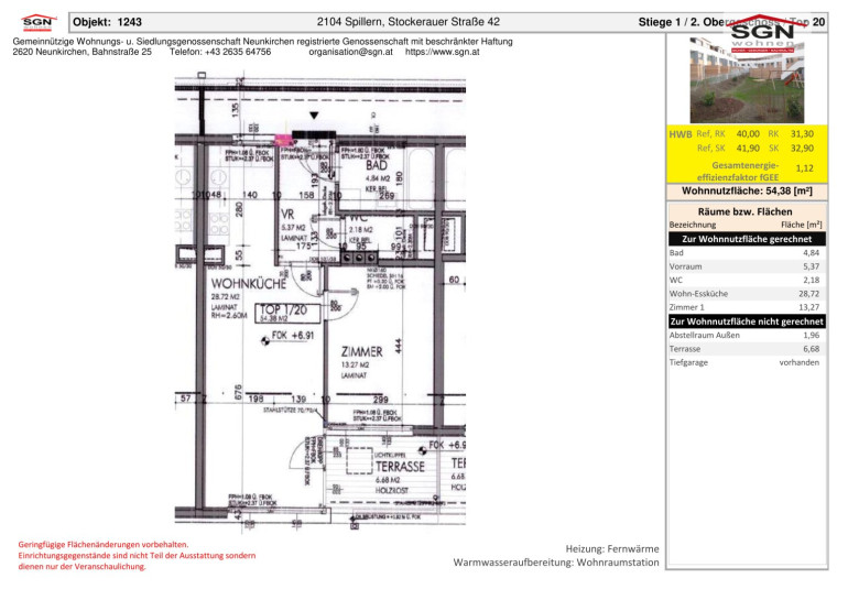 Geförderte 2-Zimmer Genossenschaftswohnung mit Terrasse in Spillern – nur 550,86 € mtl.!