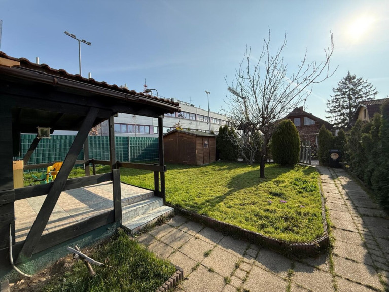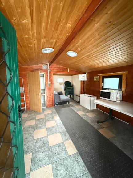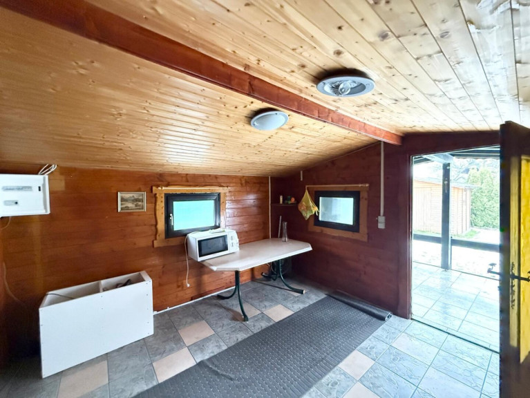 Die Wohnfläche des Altbestands verteilt sich auf 30 m² und bietet somit ideale Bedingungen für Singles und Paare die einfach mal dem Alltagsstress entkommen und gleichzeitig noch in der Stadt bleiben wollen. Durch die überdachte Veranda gelangt man in einen gemütlichen Wohnbereich mit Küche. Ebenfalls ist ein Badezimmer mit WC und Dusche vorhanden.