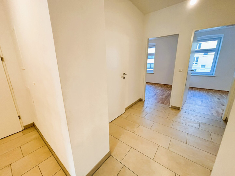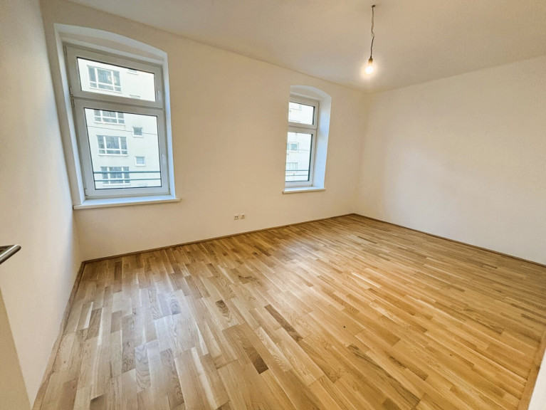 Ein besonderes Highlight ist die 8,95 m² große Loggia mit Blick in den ruhigen Innenhof – der perfekte Ort zum Entspannen. Große Fensterflächen und eine breite Balkontür sorgen für eine optimale natürliche Belichtung und schaffen ein helles, freundliches Wohnambiente. Hochwertiger Parkettboden sowie moderne Ausstattungsdetails unterstreichen den zeitgemäßen Charakter der Wohnung.