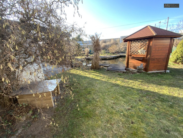 Der Garten ist eine wahre Wohlfühloase: Ein eleganter Schwimmteich bietet nicht nur Erfrischung, sondern auch ein optisches Highlight. Hier lässt sich die Natur in vollen Zügen genießen – ob beim Sonnenbaden, Grillen oder einfach beim Abschalten vom Alltag.
