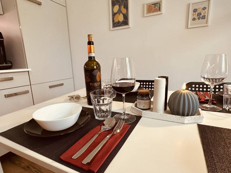 Im Moment wird die Wohnung als "Cloe´s Apartments" über booking.com und Airbnb vermietet. Auf Wunsch können bereits bestehende Buchungen übernommen werden. Grundsätzlich ist die Wohnung jedoch bestandsfrei und kann jederzeit für den Eigenbedarf genutzt werden.