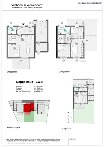 Die Doppelhaushälfte wurde 2023-2025 gebaut undbefindet sich in ruhiger Wohnlage in Weikendorf.