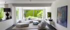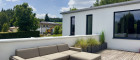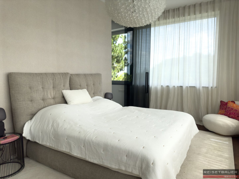 Raumhohe Terrassenschiebeelemente sorgen für fließende Übergänge zwischen innen und außen. Technisch ist das Haus auf dem neuesten Stand: Eine Fußbodenheizung mit Luft-Wärmepumpe, Solaranlage, elektrische Raffstores, Klimaanlage, Hausstaubsauganlage sowie eine integrierte Beleuchtung bieten höchsten Wohnkomfort. Flachdach und Terrasse wurden kürzlich erneuert. Ein Brunnen für die Bewässerung des Gartens befindet sich ebenfalls am Grundstück.