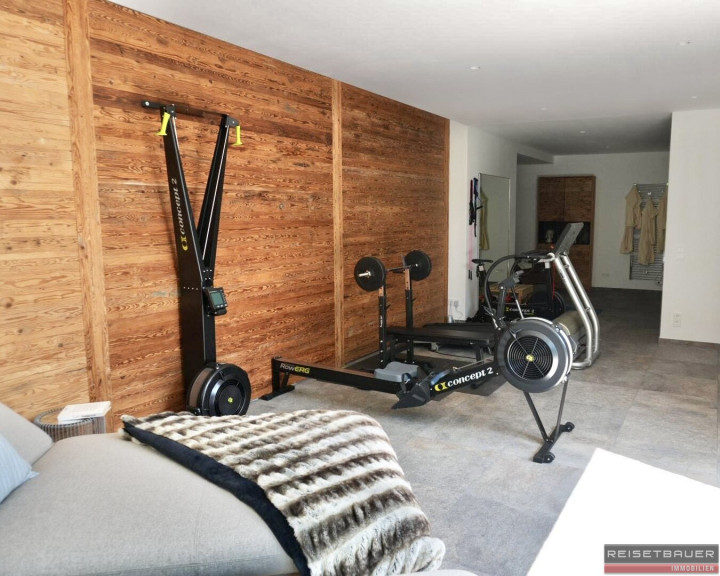 Das Untergeschoss besticht durch einen lichtdurchfluteten, offenen Wohn- und Essbereich mit hochwertiger Küche und angrenzender Speisekammer. Von hier aus gelangt man auf eine überdachte, großzügige Terrasse mit Teakholzbelag und herrlichem Ausblick. Ein Abstellraum sowie ein Weinkeller ergänzen das Raumangebot. Der hauseigene Wellness- und Fitnessbereich mit Sauna und Blick zur Terrasse bietet pure Entspannung. Ein zusätzlicher Schrankraum sorgt für viel Stauraum.