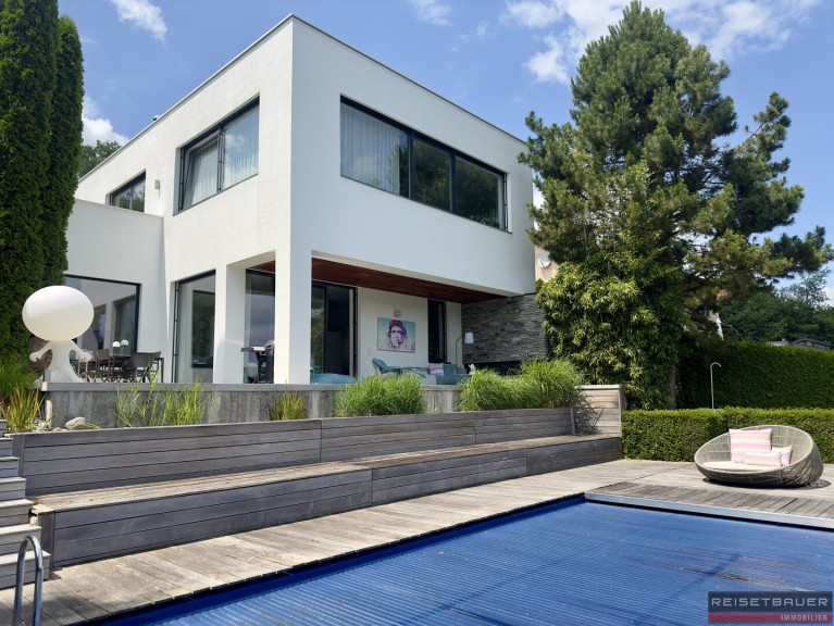 Die im Jahr 2002 errichtete Villa wurde 2014 durch einen Zubau sowie eine umfassende Modernisierung auf den neuesten Stand gebracht. Zum Einsatz kamen ausschließlich hochwertige Baumaterialien und Ausstattungsdetails – darunter edle Echtholz- und Natursteinböden, großformatiges Feinsteinzeug sowie ausgewählte Sanitärelemente. Das Design ist zeitlos elegant und unterstreicht den hohen architektonischen Anspruch des Hauses.