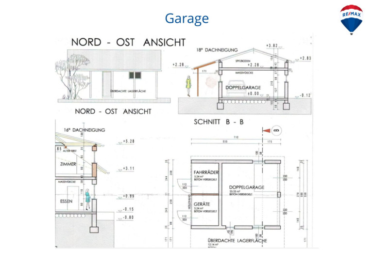 Ergänzt wird das Raumangebot durch mehrere Nebenflächen und Nebengebäude. Eine Doppelgarage mit ca. 25 m², ein Fahrrad- und Geräteraum mit ca. 10,5 m², überdachte Unterstände mit ca. 24 m² sowie eine Bienenhütte mit ca. 6,4 m². Diese Flächen bieten vielfältige Nutzungsmöglichkeiten für Hobby, Lagerung oder handwerkliche Tätigkeiten.