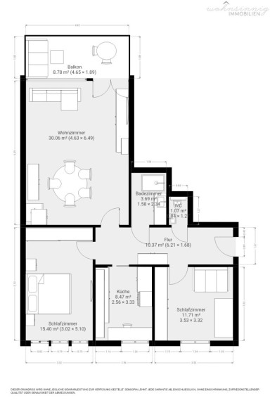 - ca. 83 m² Wohnfläche + ca. 8 m² südseitige Loggia