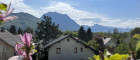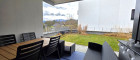 Sowohl vom Wohnzimmer als auch vom Elternschlafzimmer aus gelangt man auf die Terrasse und in den eigenen Garten. Von hier genießt man einen wunderbaren Ausblick auf den Traunstein und die umliegende Bergwelt.