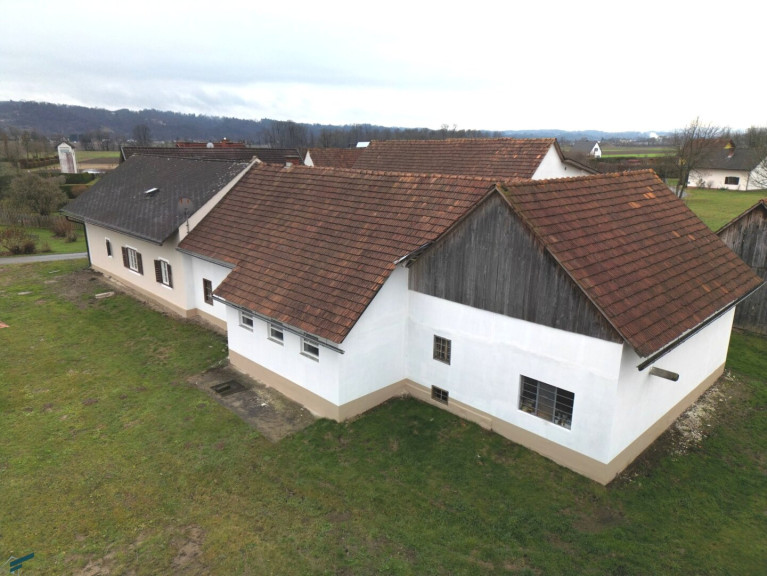 Eichfeld / Mureck - Wir dürfen hier eine kleine Hofstelle ( inaktive Landwirtschaft ) auf insgesamt knapp 1 ha Grund ( ca. 3100 m² davon BaulandDorfgebiet ) in Grünruhelage anbieten. Die Liegenschaft befindet sich am Ortsrand, angrenzend Felder und Wald, und bestehet aus dem Haupthaus, ehemaligen Stallungen, einer Scheune und einem großen Schuppen sowie einem weiteren Nebengebäude.