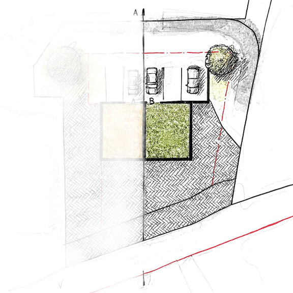 Das Grundstück ist die zweite Hälfte einer insgesamt doppelt so großen Parzelle und entspricht laut Bebauungsstudie dem Haus Grün (grün markiert). Gut möglich ist eine platzsparende, energieeffiziente und harmonische Doppelhausbebauung mit dem angrenzendem Grundstück. Auf der kaufgegenständlichen Liegenschaft ist eine Wohnnutzfläche bis zu ca. 165 m² und großzügigen Außenbereichen möglich. Der Planungsvorschlag wurde von der Gemeinde bereits positiv beurteilt.