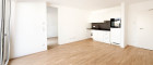 Parkett, Fliesen, Fußbodenheizung, Wohnküche / offene Küche, Einbauküche, Personenaufzug, Westbalkon, Dusche