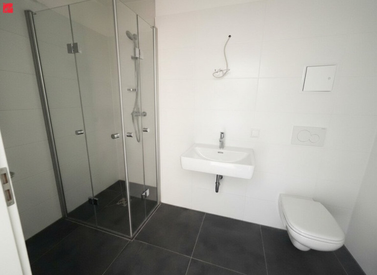 Ein geräumiger Abstellraum eignet sich ideal als begehbarer Schrank. Das Badezimmer ist modern verfliest und mit ebenerdiger Dusche sowie WC ausgestattet. Terrasse und kleiner Garten sorgen für zusätzlichen Freiraum.