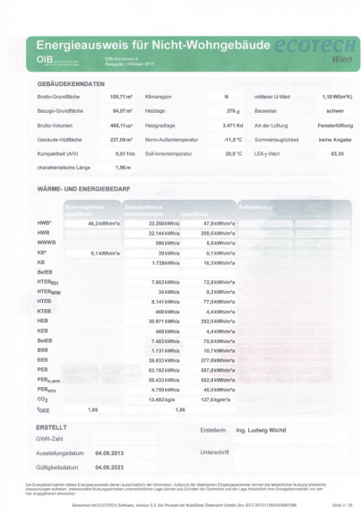 | Heizwärmebedarf: | 46,30 kWh/m²a |