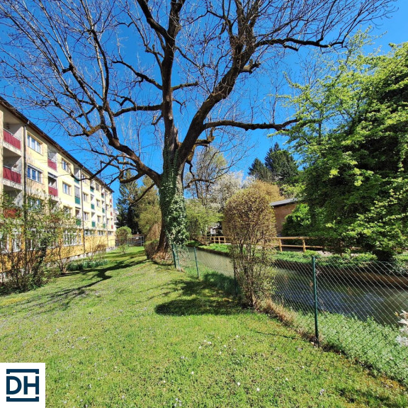 Die Wohnung selbst befindet sich in einem gepflegten Mehrparteienhaus im ersten Stock und überzeugt durch eine optimale Raumaufteilung. Die Loggia - Richtung Süd/Ost -bietet viel Ruhe bzw. einen herrlichen Blick in den Garten , der allen Bewohnern zur Verfügung steht. Besonders genießen kann man den direkt davor vorbeifließenden Almkanal, der nicht nur Gemütlichkeit ausstrahlt, sondern auch manchen Bewohnern an heißen Tagen zur Abfrischung dient.