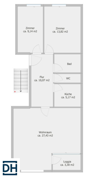 - Wohnfläche 71,50 m² / Loggia 3.30 m² /Keller 6.70 m²