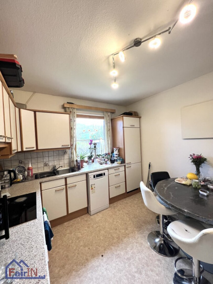 Fliesen, Laminatboden, Einbauküche, Dusche, Parkplatz