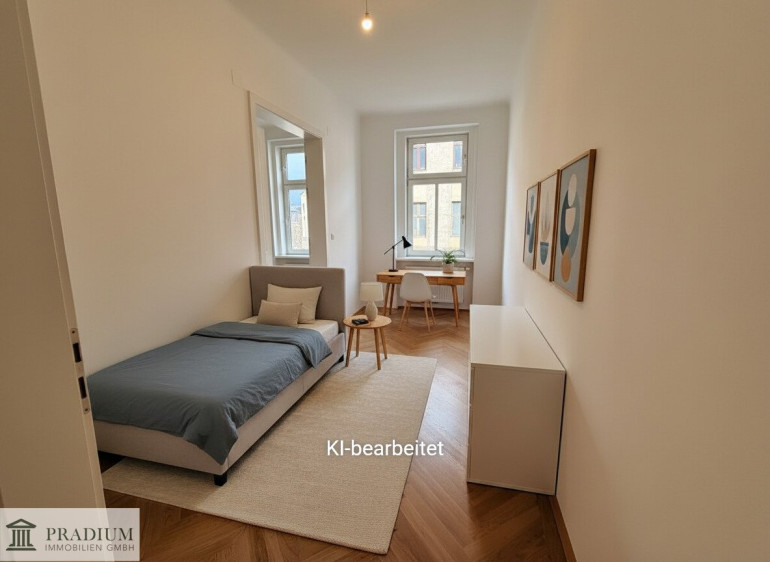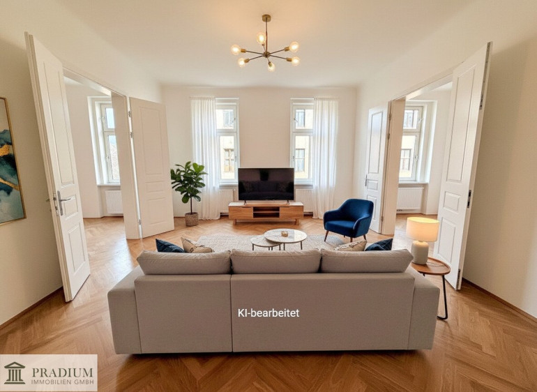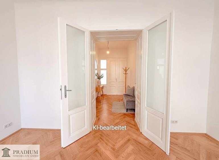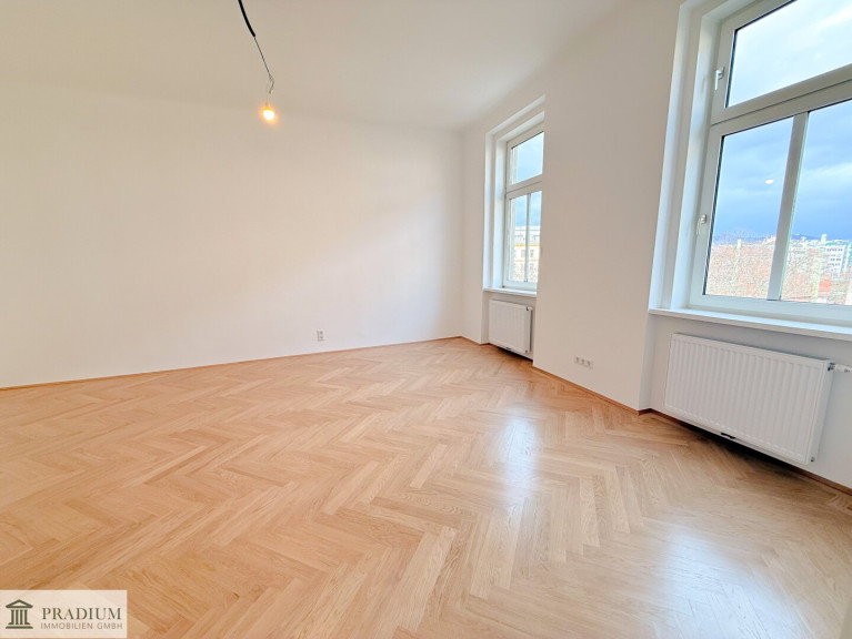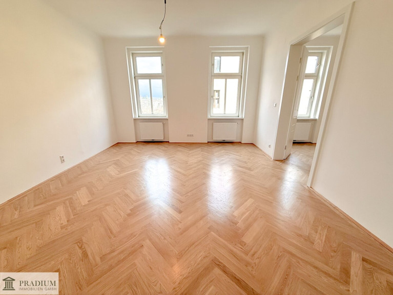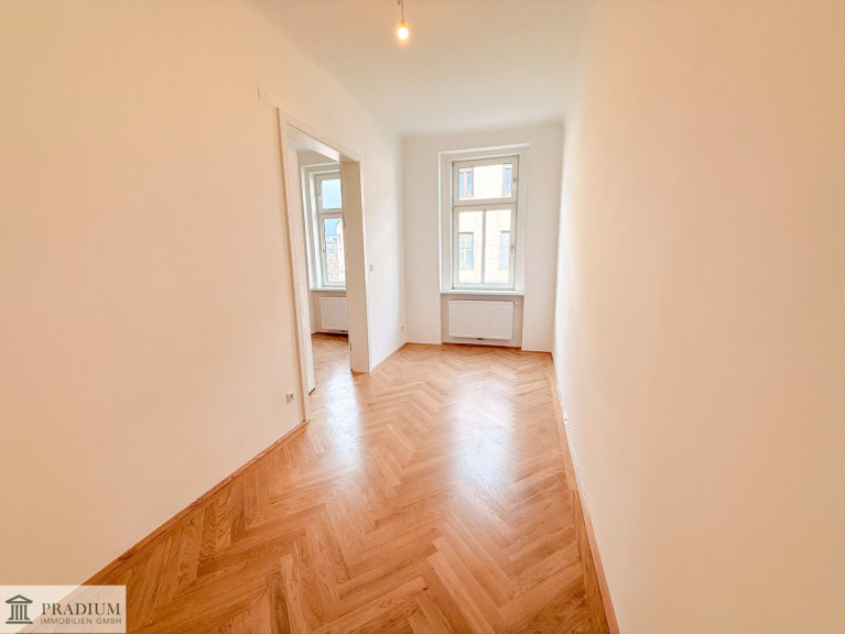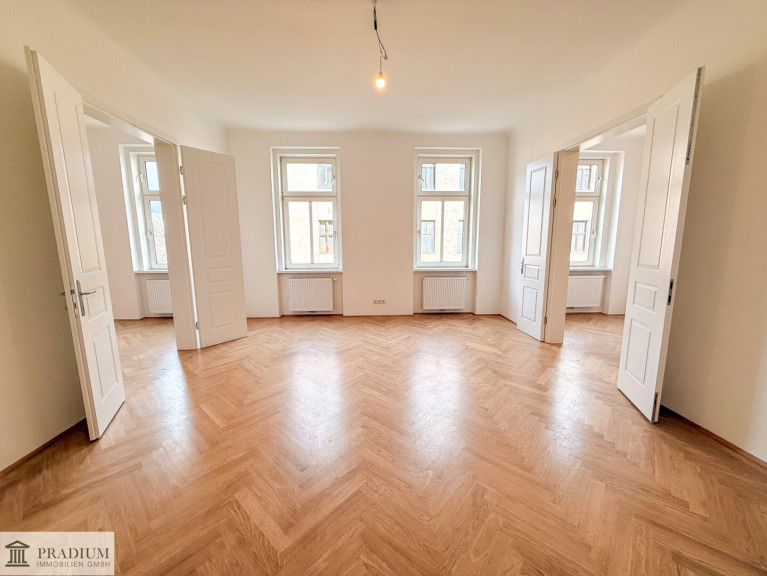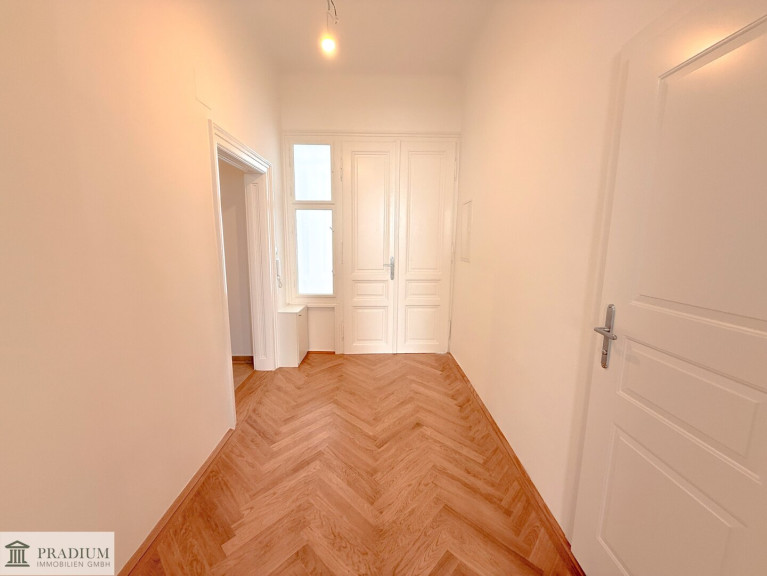 Mit einer Wohnfläche von rund 89 m² liegt die Wohnung im 2. Stock eines klassischen Wiener Altbauhauses und verbindet historischen Charme mit modernstem Wohnkomfort. Die umfassende, hochwertige Sanierung Ende 2025 / Anfang 2026 verleiht dem Objekt ein exklusives Wohngefühl: Ein edler Vollholz-Fischgrätparkett, ein modern gestaltetes Badezimmer sowie stilvolle Materialien ziehen sich durch die gesamte Wohnung.