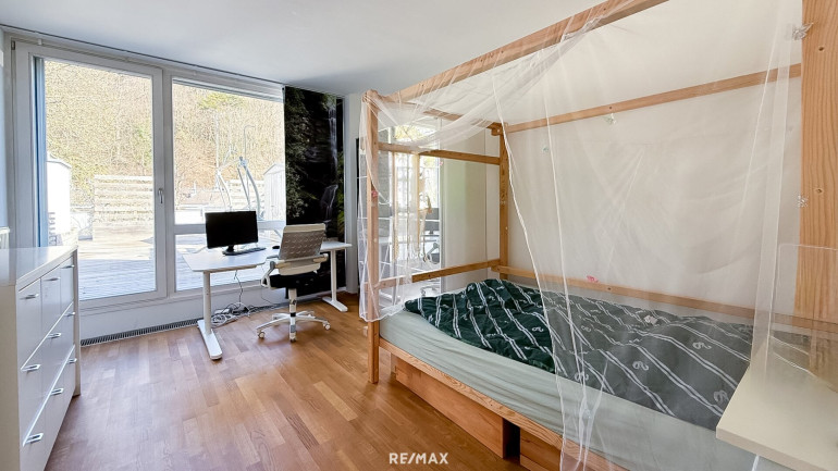 Zwei großzügige Terrassen, teils mit direktem Blick in den Wald, sowie ein zusätzlicher Balkon erweitern den Wohnraum ins Freie. Genießen Sie entspannte Stunden im Grünen, Frühstück an der frischen Luft oder laue Sommerabende mit Blick ins Grüne – hier wird Lebensqualität spürbar.