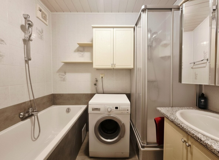 Fliesen, Laminatboden, Zentralheizung, Einbauküche, Personenaufzug, Westbalkon, Badewanne, Dusche, Kabel/Satelliten-TV, Parkplatz, Wasch/Trockenraum