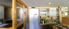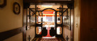 Links gelangt man in den Küchenbereich, rechts in den Hauptgastraum.