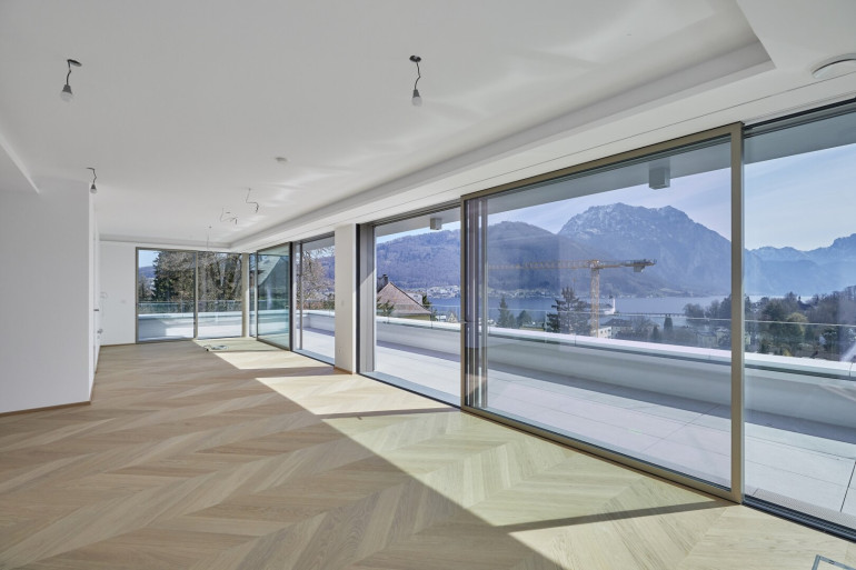 Das Objekt besteht aus zwei sorgfältig geplanten Gebäuden, welche insgesamt 12 Wohneinheiten auf jeweils 4 Etagen, enthalten. Mit dem Aufzug kommen Sie mit nur einer Schlüsselumdrehung barrierefrei, direkt in das Penthouse und können umgehend vom Eingang aus den weitereichenden Seeblick und das Bergpanorama genießen.