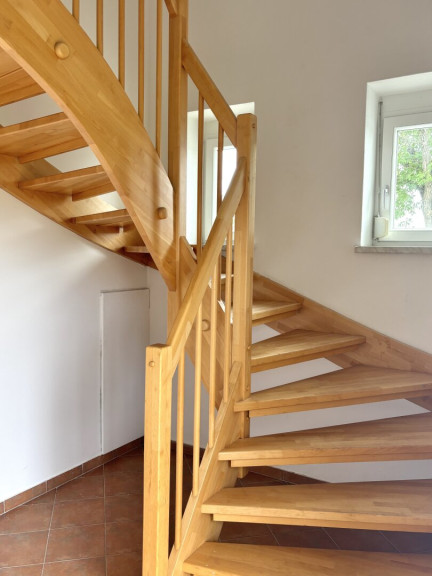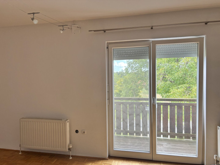 Vorraum - Flur - Küche/Esszimmer - Wohnzimmer ( Balkon ) - 2 x Zimmer - Bad ( Badewanne ) - WC - Hackschnitzel Zentralheizung - Abstellraum