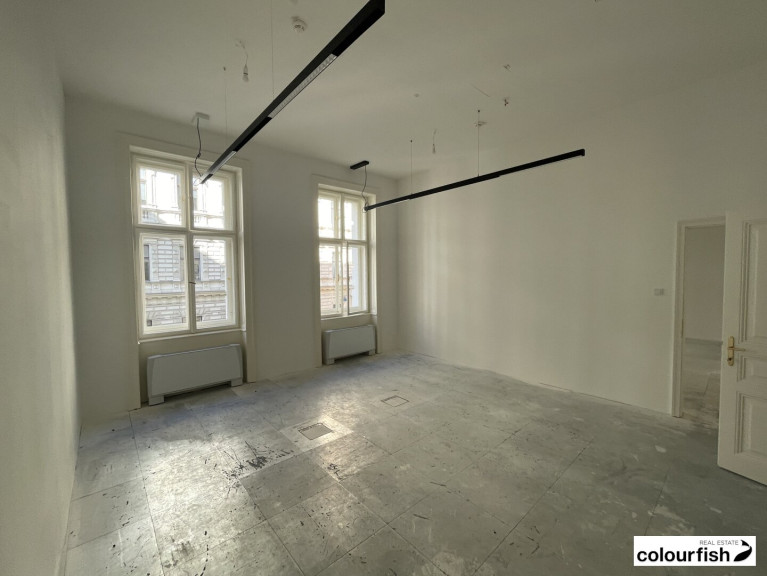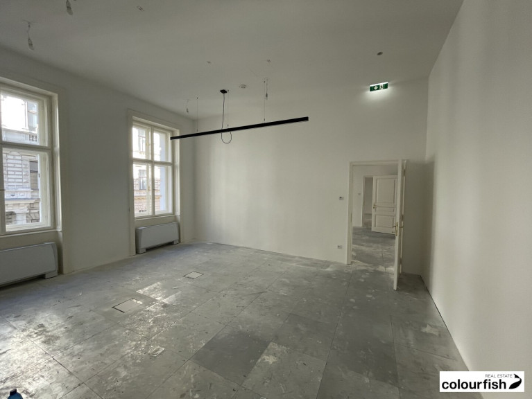In die Vermietung gelangt eine attraktive ca. 392 m² große Bürofläche in sehr guter Lage beim Rathaus. Die gesamte Liegenschaft wurde in den vergangenen Jahren vom Eigentümer aufwendig saniert mit runderneuerter Fassade und äußerst attraktiven Allgemeinflächen. Im Zuge der Generalssanierung wurden auch die Büroflächen komplett erneuert und mit modernem Bürostandard ausgestattet. Die Büroräume verfügen über einen Doppelboden, die Beheizung und Kühlung erfolgt über Fancoils. Der Grundriss ist weitesgehend flexibel und kann an mieterspezifische Anforderungen angepasst werden. Unterschiedliche Raumkonfigurationen wurden bei der Haustechnik bereits mitberücksichtigt. Die straßenseitig gelegenen Büroflächen sind äußerst hell und freundlich. Moderne, getrennte Sanitäreinheiten sowie eine Dusche in jeder Einheit ergänzen das Angebot.