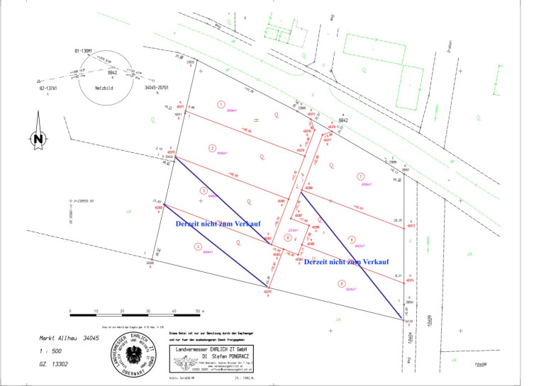 - Grundstück 3: 858m2 (Länge ca. 42m, Breite ca. 22m)
