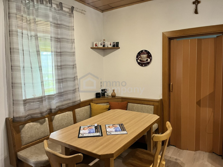 Das gemütliche Wohnzimmer bietet ausreichend Platz für entspannte Stunden. Die Küche mit Essplatz bildet das Herzstück des Hauses – ausgestattet mit einem behaglichen Schwedenofen, der für eine besonders angenehme Wohnatmosphäre sorgt.