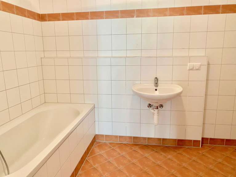 Vorraum, Wohn-Esszimmer mit schöner Küche, ein Schlafzimmer, Badezimmer mit Badewanne, WC extra, Abstellraum, Keller-Abteil