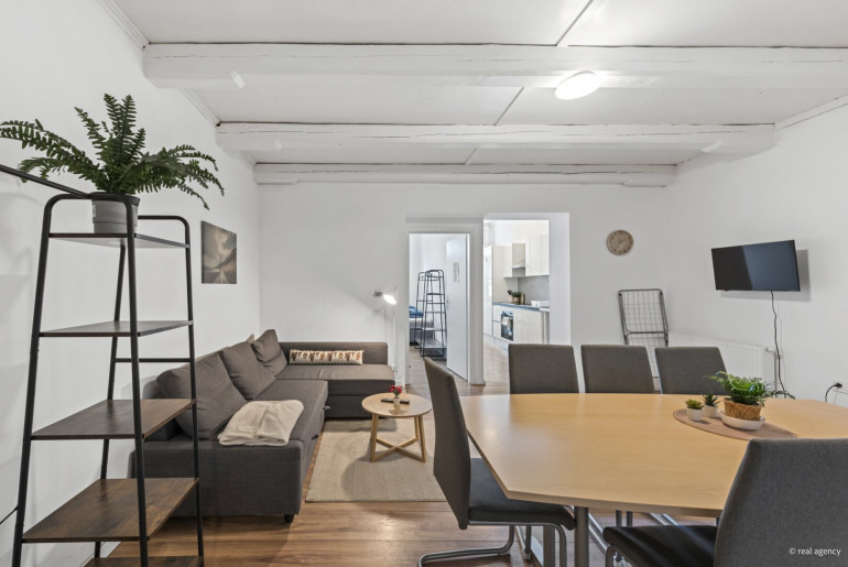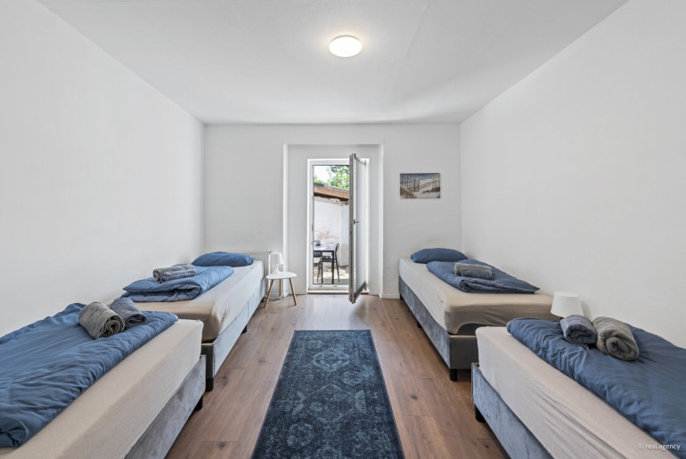 Das Haus umfasst zwei separate Wohneinheiten mit insgesamt sieben Zimmern. Beide Wohnungen verfügen über eine eigene Küche und ein Badezimmer.