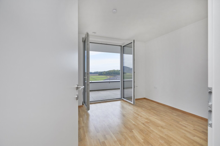 Das 2023 fertiggestellte Projekt mit nur neun Einheiten überzeugt durch seine klare Architektur, eine barrierefreie Erschließung mit Lift sowie eine energieeffiziente Bauweise. Die ruhige Lage am Ortsrand mit unverbaubarem Blick über Wiesen und Felder schafft eine Wohnqualität, die man vom ersten Moment an spürt.