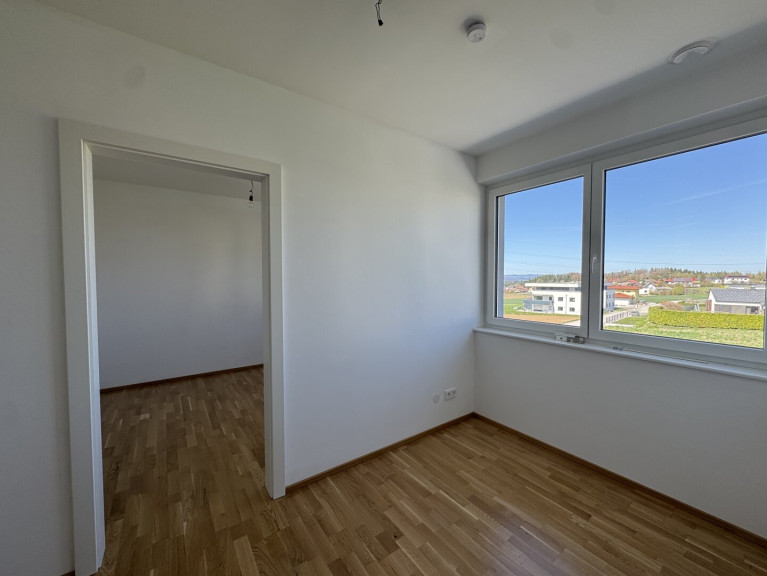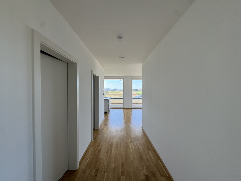 Das 2023 fertiggestellte Projekt überzeugt durch seine klare Architektur, eine barrierefreie Erschließung mit Lift sowie eine energieeffiziente Bauweise. Die ruhige Lage am Ortsrand mit unverbaubarem Blick über Wiesen und Felder schafft eine Wohnqualität, die man vom ersten Moment an spürt.
