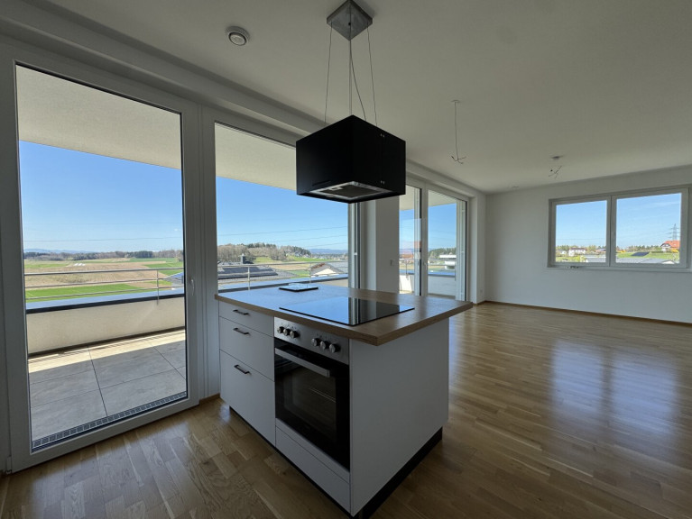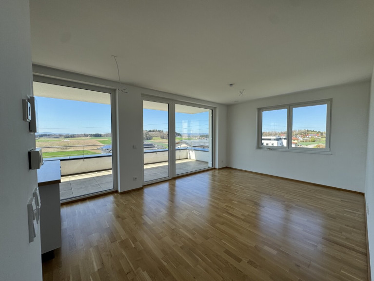 Ein besonderes Highlight dieser Wohnung ist die ca. 20m² große Terrasse mit traumhaftem Weitblick ins Grüne. Hier genießen Sie entspannte Sonnenstunden, laue Sommerabende und einen freien Blick bis zur umliegenden Berglandschaft – ein privater Rückzugsort mit Panorama-Charakter.