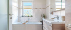 - Badezimmer mit Fenster, Badewanne und Dusche