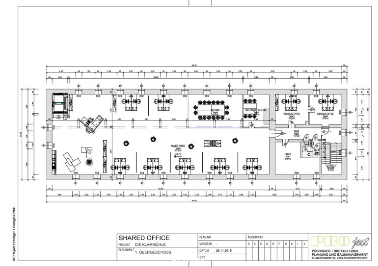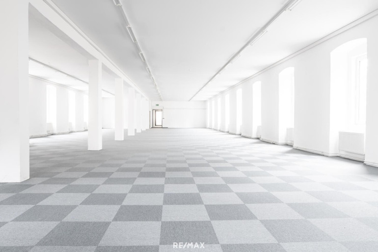 Diese befindet sich mit jeweils ca. 450 m² im 2. Obergeschoß des ingesamt 5 geschößigen Gebäude. (Kellergeschoss, Erdgeschoss, 1. und 2. Obergeschoss und Dachgeschoss)