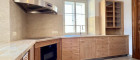 - Moderne Einbauküche mit Küchenofen und Fenster Marmor ca. 17,93m²