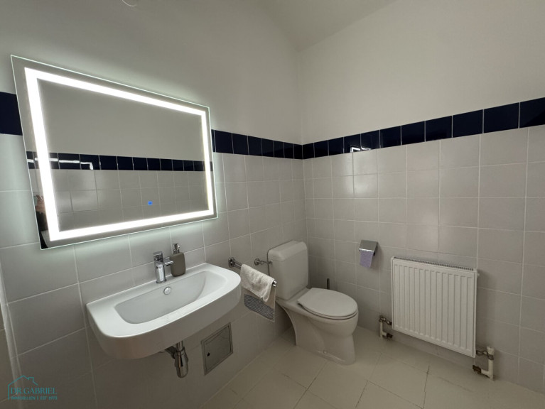 - Spacious entrance hall, - Living room, - Dining room (open to the living room), - Kitchen, - One bedroom (18.46 m²), one children's room (9.6 m²), - Bathroom with bathtub, shower, and toilet, - Separate toilet Living room and dining room with access to the terrace