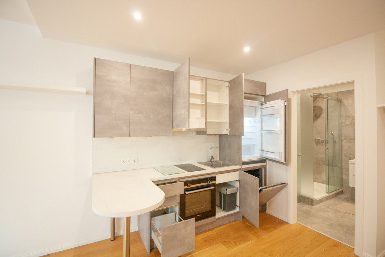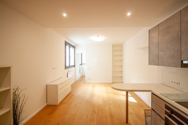 Piaristengasse 29: Hofseitige 2 Zimmer Wohnung: moderne Tischlermöbeln & alte Fenstern