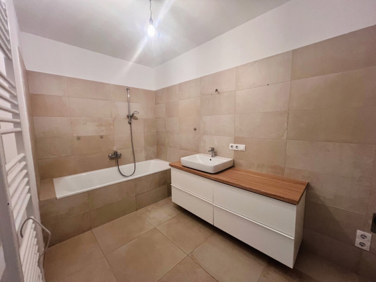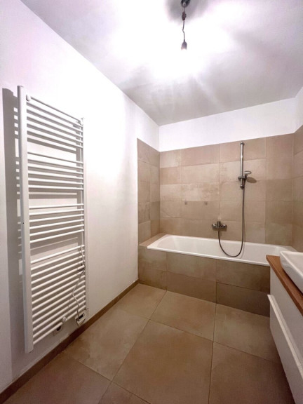 - Großformatige Fliesen in den Sanitärbereichen