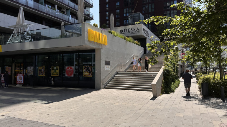 – TRIIIPLE Plaza mit Restaurants, Cafés und Geschäften, darunter BILLA,