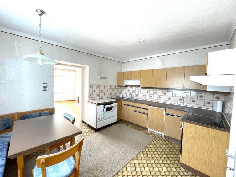 - Wohnküche mit Herd zum Heizen und Kochen, Ceranfeldplatte und Backrohr, Spüle, Dunstabzug und großem Fenster Richtung Osten;