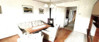- Wohnzimmer, südseitig gelegen, mit dem großen Fenster und der Balkontür zum Vorgarten sowie einem Schwedenofen;
