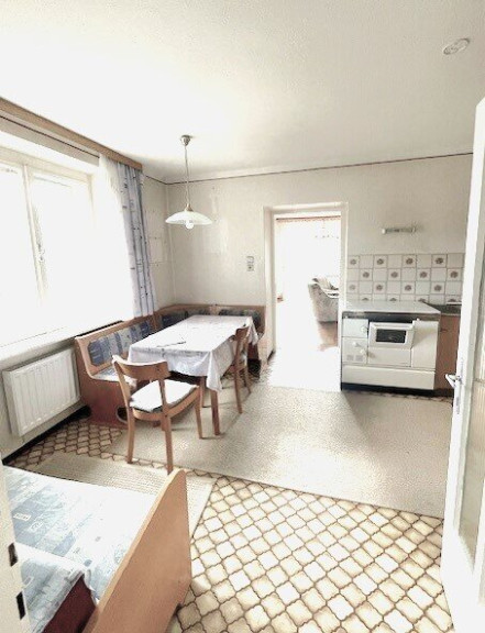 - Wohnküche mit Herd zum Heizen und Kochen, Ceranfeldplatte und Backrohr, Spüle, Dunstabzug und großem Fenster Richtung Osten;