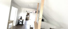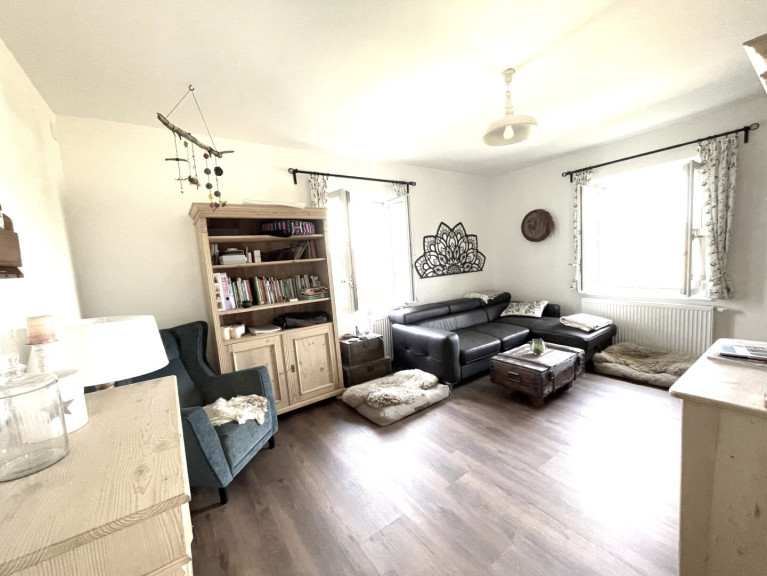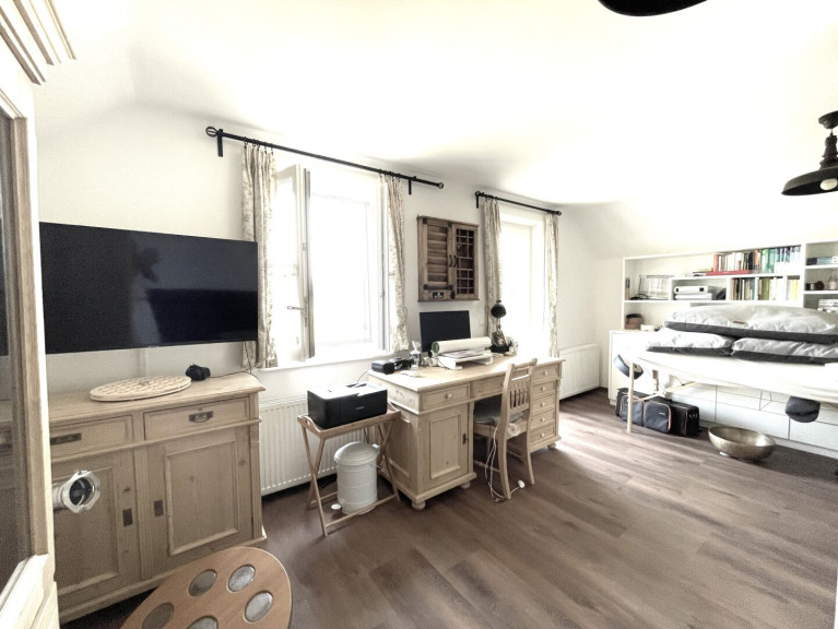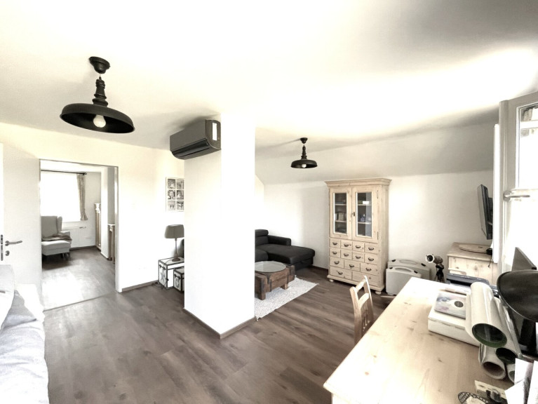 -Der Große Raum: Derzeit wird dieser Raum aufgeteilt in Wohnzimmer, Arbeitszimmer sowie den Massageraum und könnte auch als weiteres Schlafzimmer genützt werden. Besonders reizvoll ist hier der Zugang zum Balkon, den man auch zum Lesen, Chillen oder Arbeiten genießen kann.