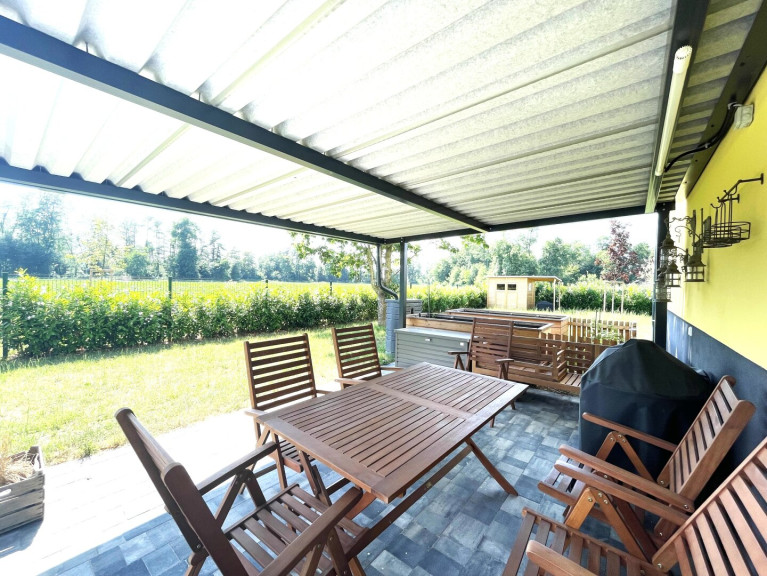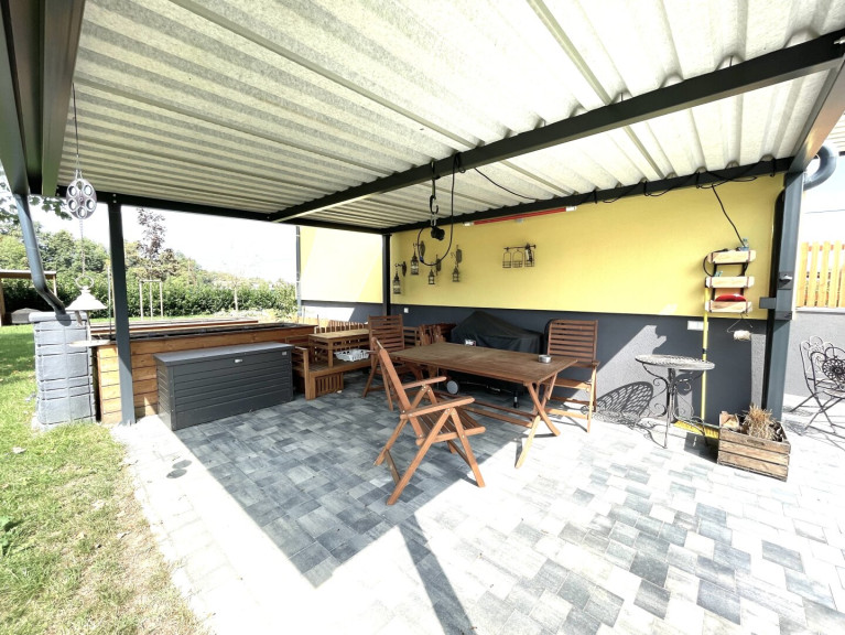 *Überdachter Sitz-Grillplatz im Garten beim Haus;