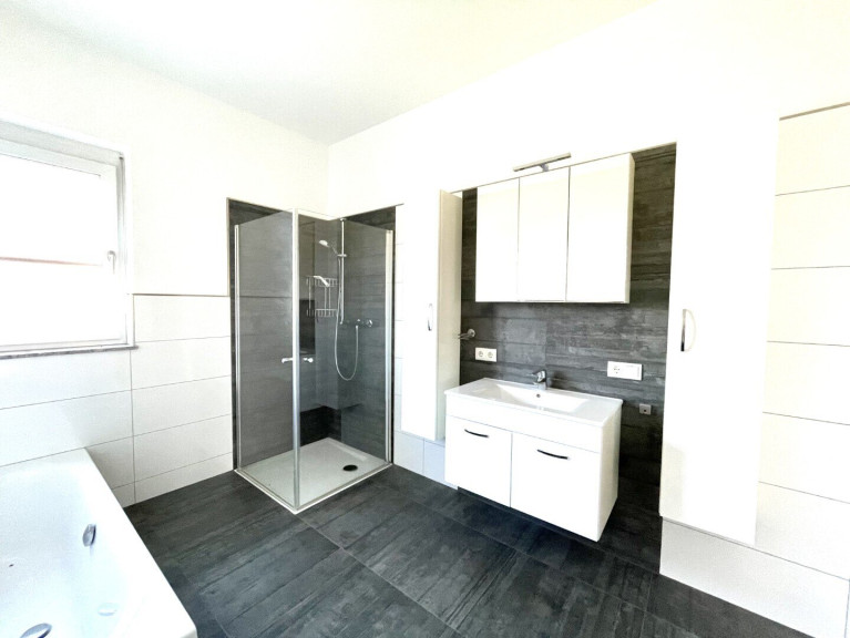 *Badezimmer mit Badewanne, Dusche, Waschbecken und WC;