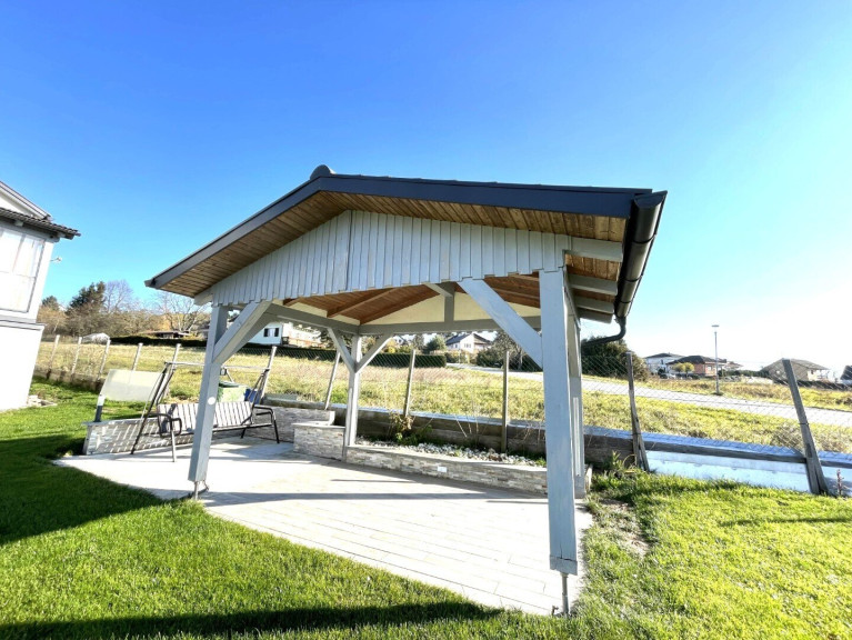 *Der eingefriedete Garten ist pflegeleicht angelegt und ein wahres Paradies. Der überdachte Grillplatz, im Design einer modernen Gartenlaube, spendet an heißen Sommertagen Schatten und gleichzeitig auch Schutz vor Regen. Mit Freunden und der Familie grillen, Feste feiern, chillen, kreativ arbeiten, einen Spielbereich für die Kinder gestalten, einen Schwimmteich oder Pool anlegen, Hochbeete und Naschgarten anlegen, … lassen Sie Ihrer Fantasie freien Lauf.